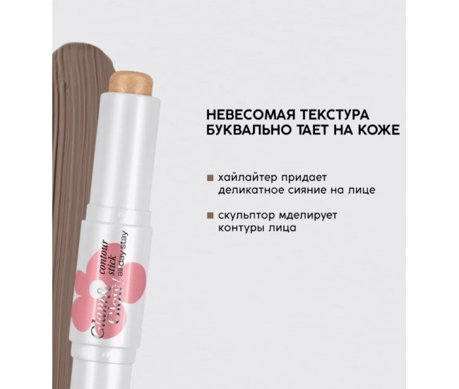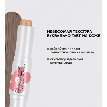 | Наименование | Контуринг двехсторонний в стике MONIC BEAUTY "Glam&Glow! All Day Stey тон 02 хайлайтер+контур 1839 |