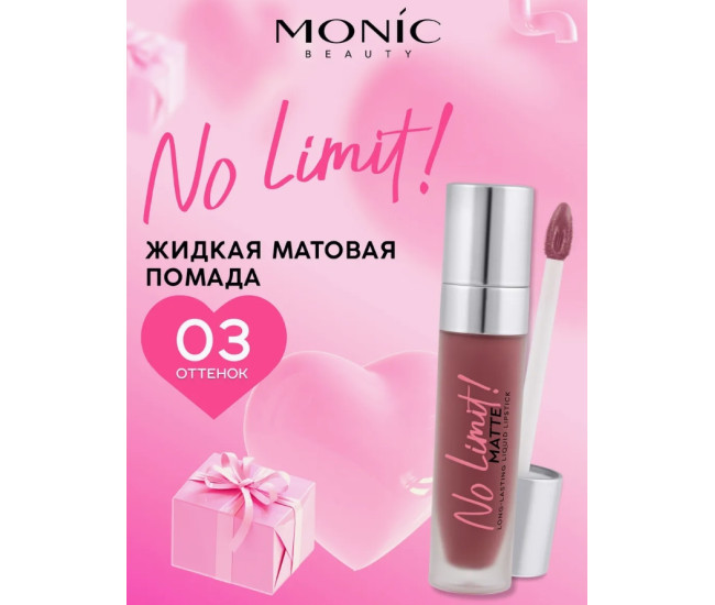| Наименование | Помада матовая жидкая MONIC BEAUTY No Limit! Long-Lasting тон 03 Daring Nude 1655 |