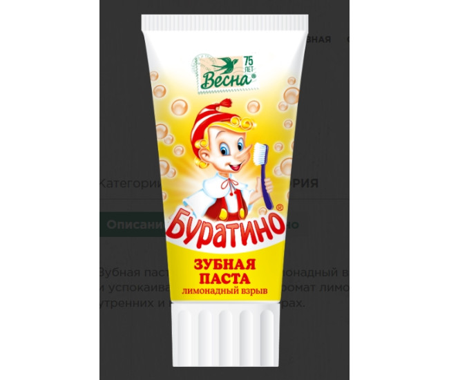 | Наименование | Зубная паста "ВЕСНА" 75гр Буратино (Лимонадный взрыв) 0954 |