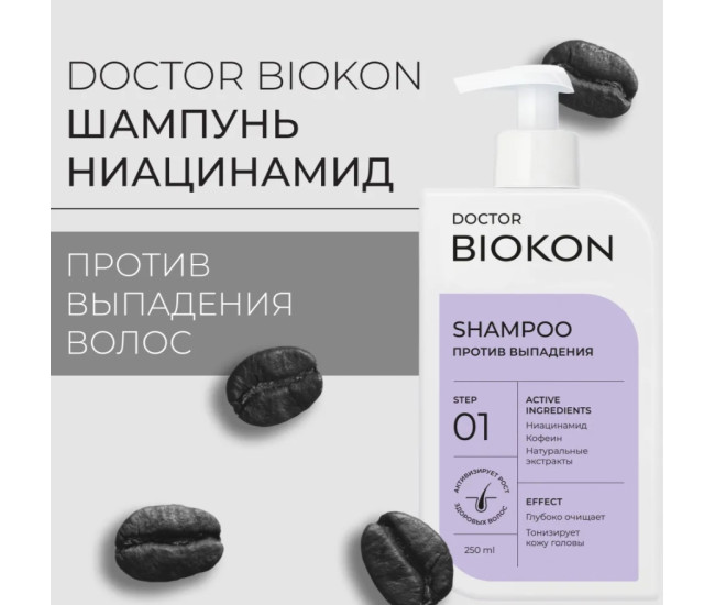 | Наименование | Шампунь Doctor Biokon против выпадения волос "Ниацинамид", 250 мл 6401 |