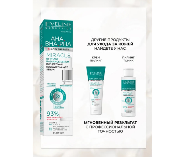 Наименование Сыворотка "EVELINE" AHA.BHA.PHA 3x ACID THERAPY двухфазная выравнивающая 30мл 4038