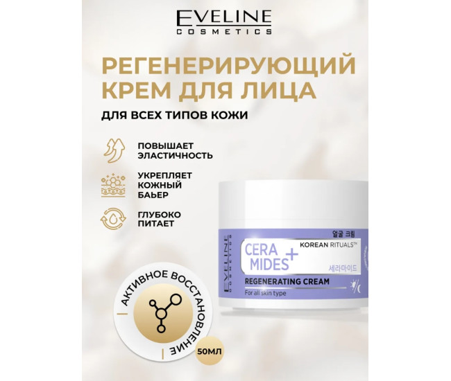 | Наименование | Крем д/лица "EVELINE" KOREAN RITUALSTM Ceramides+ регенерир д/всех видов кожи 50мл 1647 |