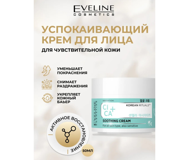 | Наименование | Крем д/лица "EVELINE" KOREAN RITUALSTM Cica+ успокаивающ д/всех видов кожи 50мл 1630 |