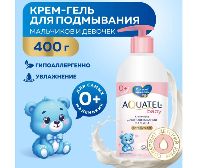 | Наименование | Крем-гель д/подмывания "AQUATEL Baby" 400г Хлопковое молочко и пантенол *12 5214 |