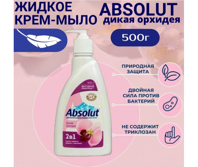 | Наименование | Мыло жидкое "ABSOLUT 2в1" 500г дикая орхидея *12 2442 |