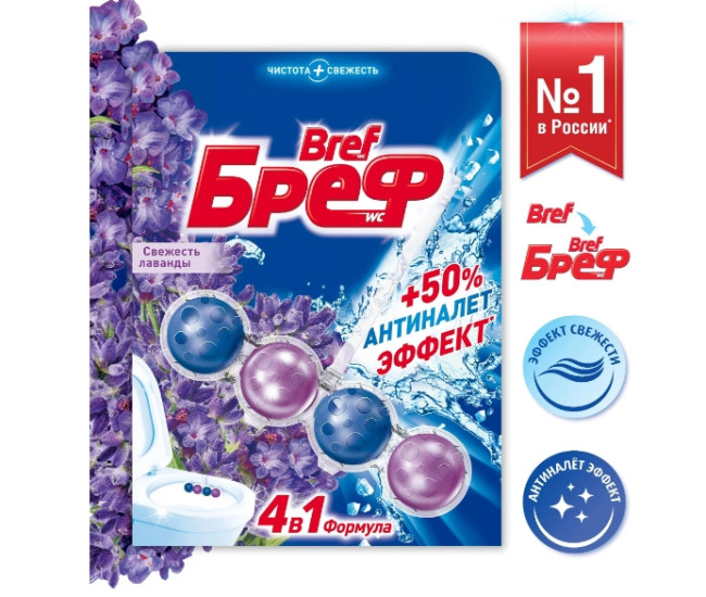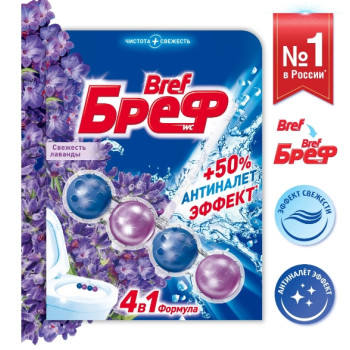 | Наименование | Подвеска д/унитаза "BREF" WC Сила Актив Свежесть Лаванды 50гр *10 6079 |