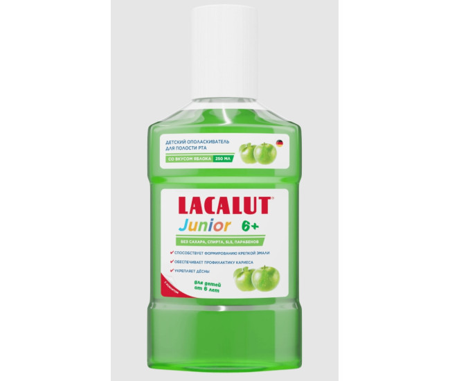 | Наименование | Ополаскиватель д/полости рта "LACALUT Junior" +6 со вкусом яблока 250 мл 4265 *(001, 01.08.2027)* |