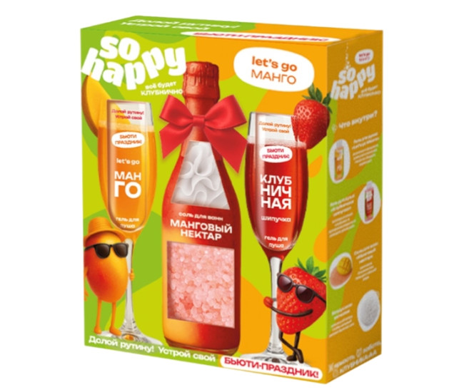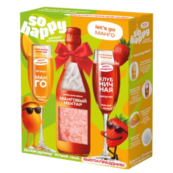 | Наименование | Набор "So Happy " 400г Lets mango (гель д/душа 2шт, соль перламутр, губка) 5325 |