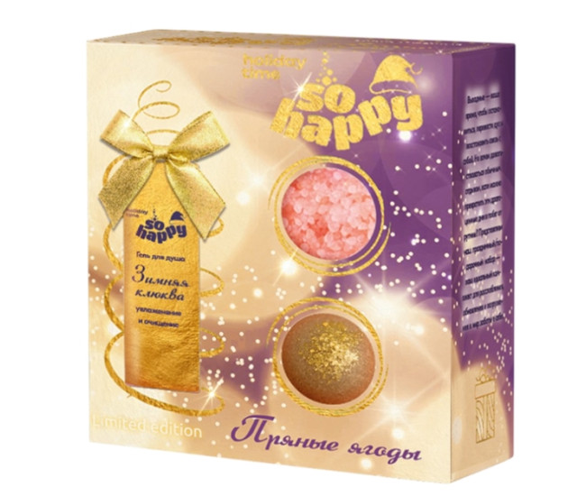 | Наименование | Набор "So Happy holiday time" 370г Пряные Ягоды (гель д/душа, соль перлам, бурлящ шар перлам) 5189 |