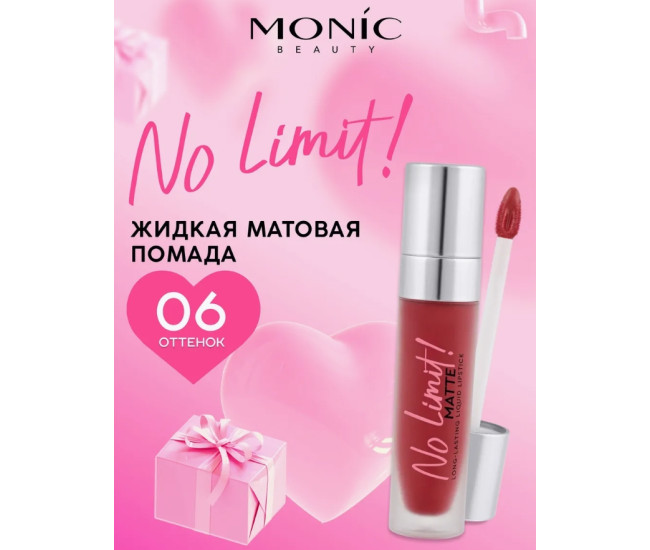 | Наименование | Помада матовая жидкая MONIC BEAUTY No Limit! Long-Lasting тон 06 Red Paradoxe 1662 |
