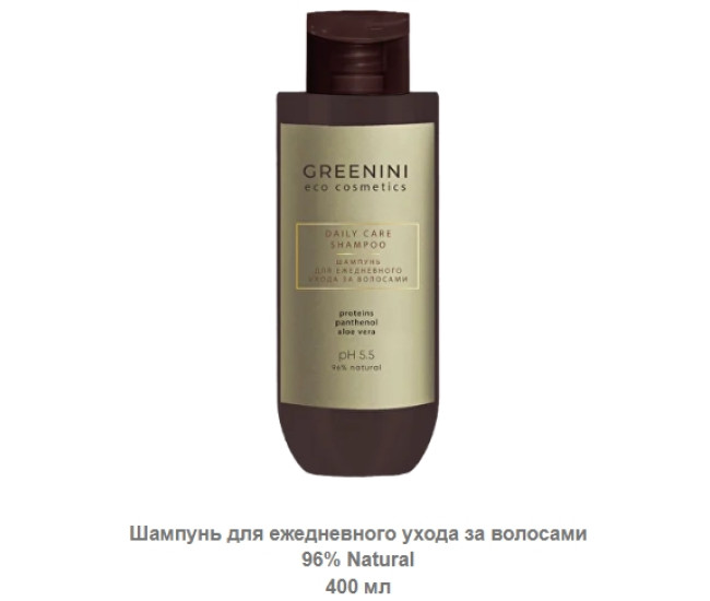 | Наименование | Шампунь для ежедневного ухода за волосами "GREENINI" 400мл 9827 |