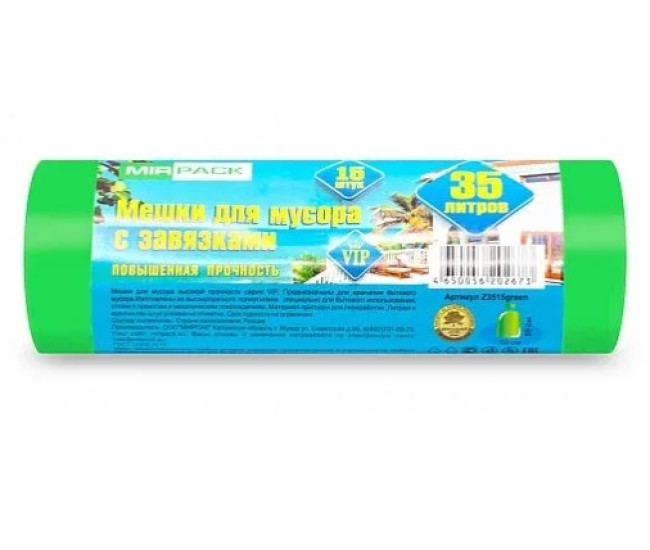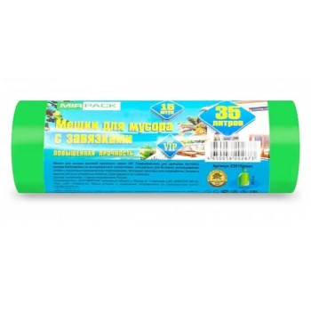 | Наименование | Мешки д/мусора MIRPACK 35л/15шт "VIP" 18мкм с завяз. зеленые *25 2673 |