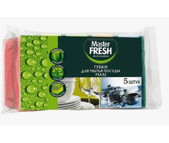 | Наименование | Губки д/посуды Master FRESH MAXI 5 шт*72 0083 |