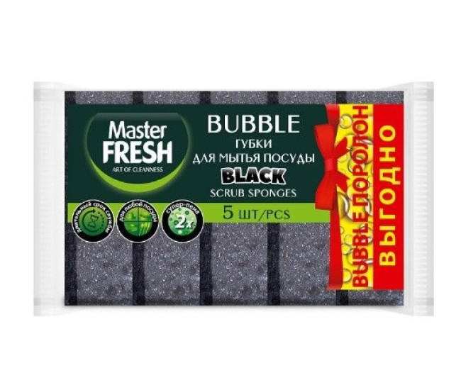 | Наименование | Губки д/посуды Master FRESH ВЫГОДНО (bubble-поролон), 5шт. BLACK*40 4042 |