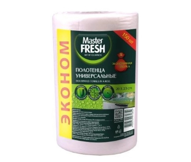| Наименование | Полотенце Master FRESH хозяйственные ЭКОНОМ в рулоне спанлейс 150 шт. 20*23см*12 4852 |