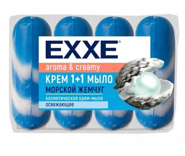 | Наименование | Мыло косметич. EXXE+крем "Морской жемчуг" 4шт*75г (СИНЕЕ полосатое) ЭКОПАК*12 4448 |