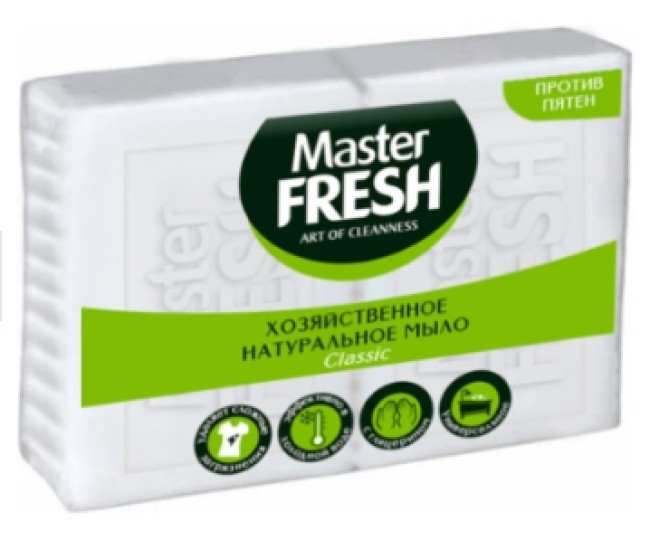 | Наименование | Мыло хоз. Master FRESH натуральное 2шт*125г (БЕЛОЕ против пятен)*20 5972 |