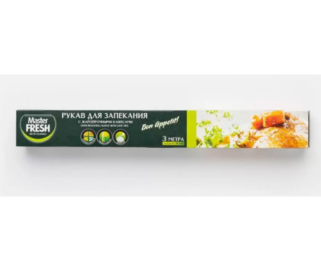 | Наименование | Рукав Master FRESH для запекания 3 метра ЖАРОПРОЧНЫЕ КЛИПСЫ *24 3213 |