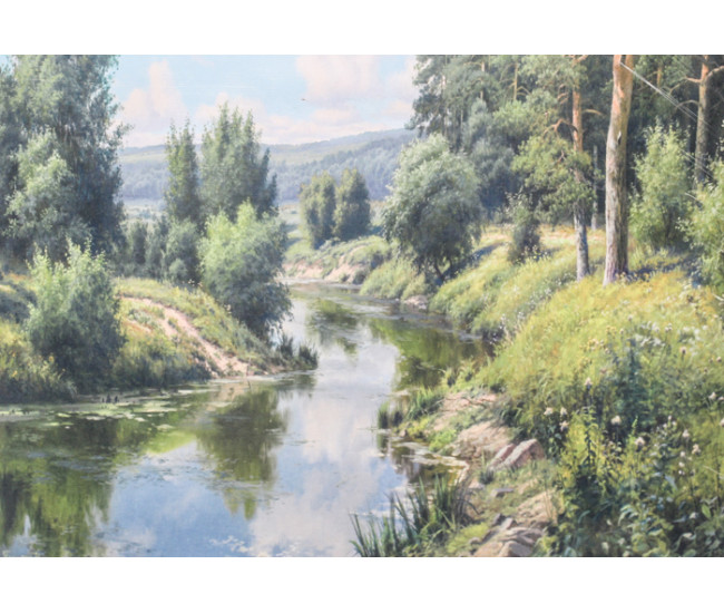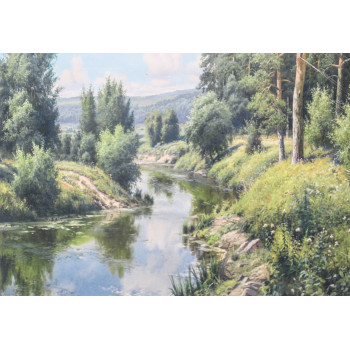 Мозаика со стразами 50х65 на рамке LMZ 5080 река в лесу