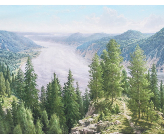 Мозаика со стразами 50х65 на рамке LMZ 5091 река в лесу