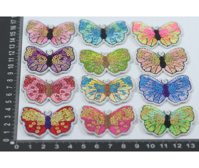| Наименование | Нашивка д/одежды S1527 "Бабочки с пайетками" (прод по 12) |