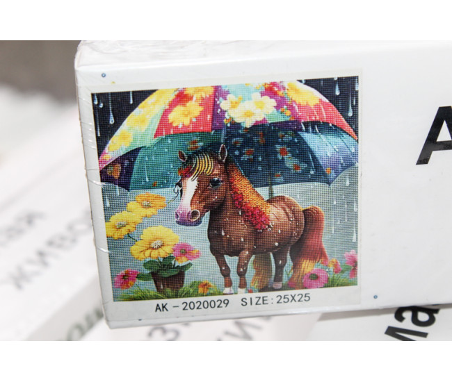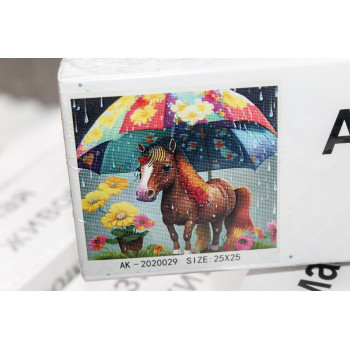 Алмазная живопись без рамы 25х25 АК-2020029 лошадь под зонтом