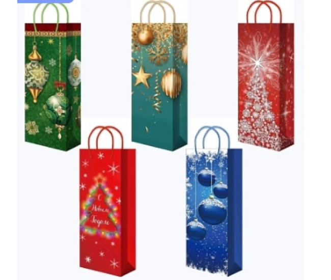 Подарочный пакет ламинированный со шнуром НГ 12*36+8см (B25 426-430) (прод по 1)*200 ПБР63025 0238