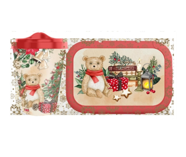 Набор с декором НГ "Игрушки" стакан с крышкой 420мл+ланч-бокс 0,85мл (красный) 7362